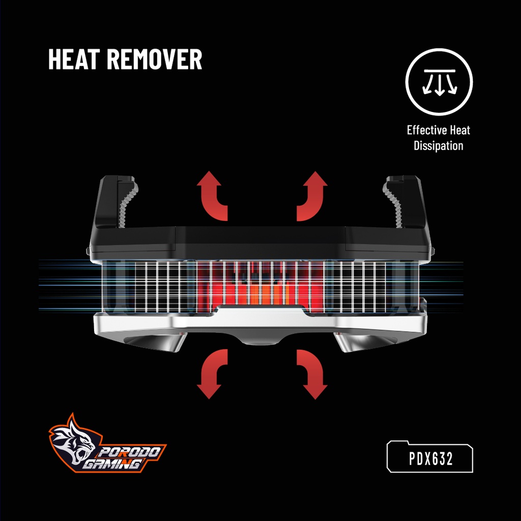 گوشی موبایل شما در هنگام بازی کردن با موبایل به خصوص بازی های بتل رویال سنگین PUBG ، Call Of Duty Mobile ، Apex Legends و وارزون موبایل Warzone Mobile داغ می شود. گرم ماندن سخت افزار و باتری موبایل باعث می شود تا گوشی موبایل شما آسیب ببیند و خراب شود. با استفاده از فن خنک کننده گوشی موبایل پرودو Porodo PDX632 می توانید دمای موبایلتان را پایین بیاورید. این خنک کننده گیمینگ مخصوص گوشی موبایل، لگ های سخت افزاری و افت فریم گوشی موبایل را رفع می کند.