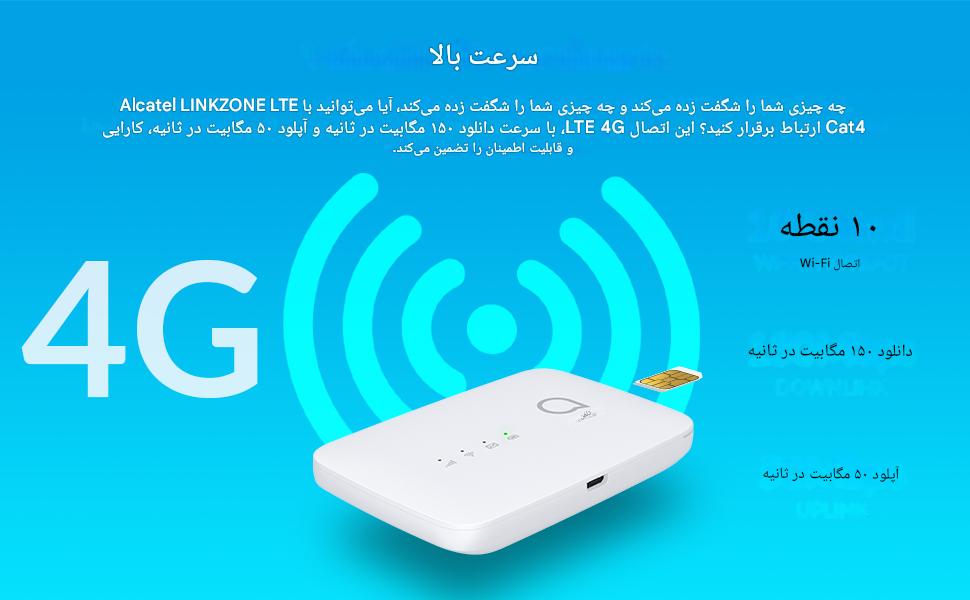 مودم همراه Alcatel LINKZONE MW45V یه دستگاه ساده و کاربردیه برای کسایی که اینترنت همراه میخوان با امکانات کافی ولی نه خیلی پیشرفته مودم MW45V ساخت شرکت آلکاتل (Alcatel) از مدلهای MiFi (مودم همراه) با پشتیبانی از LTE Cat4 هست. یعنی سرعت دانلود و آپلود قابل قبولی داره برای استفاده روزمره و مواقعی که نیاز به اینترنت پرتابل باشه. عملکردش با اینترنت سیمکارتی شنیده شده؛ مخصوصاً برای سفر، اتومبیل یا استفاده بیرون از خانه.